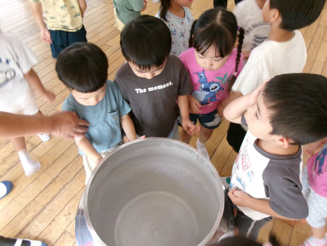 「これでご飯作るの?」「いっぱい出来るね」と驚いていました。