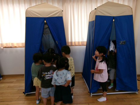 子ども達は中に入ってみたり、チャックをしめてみたりして楽しそうでした。